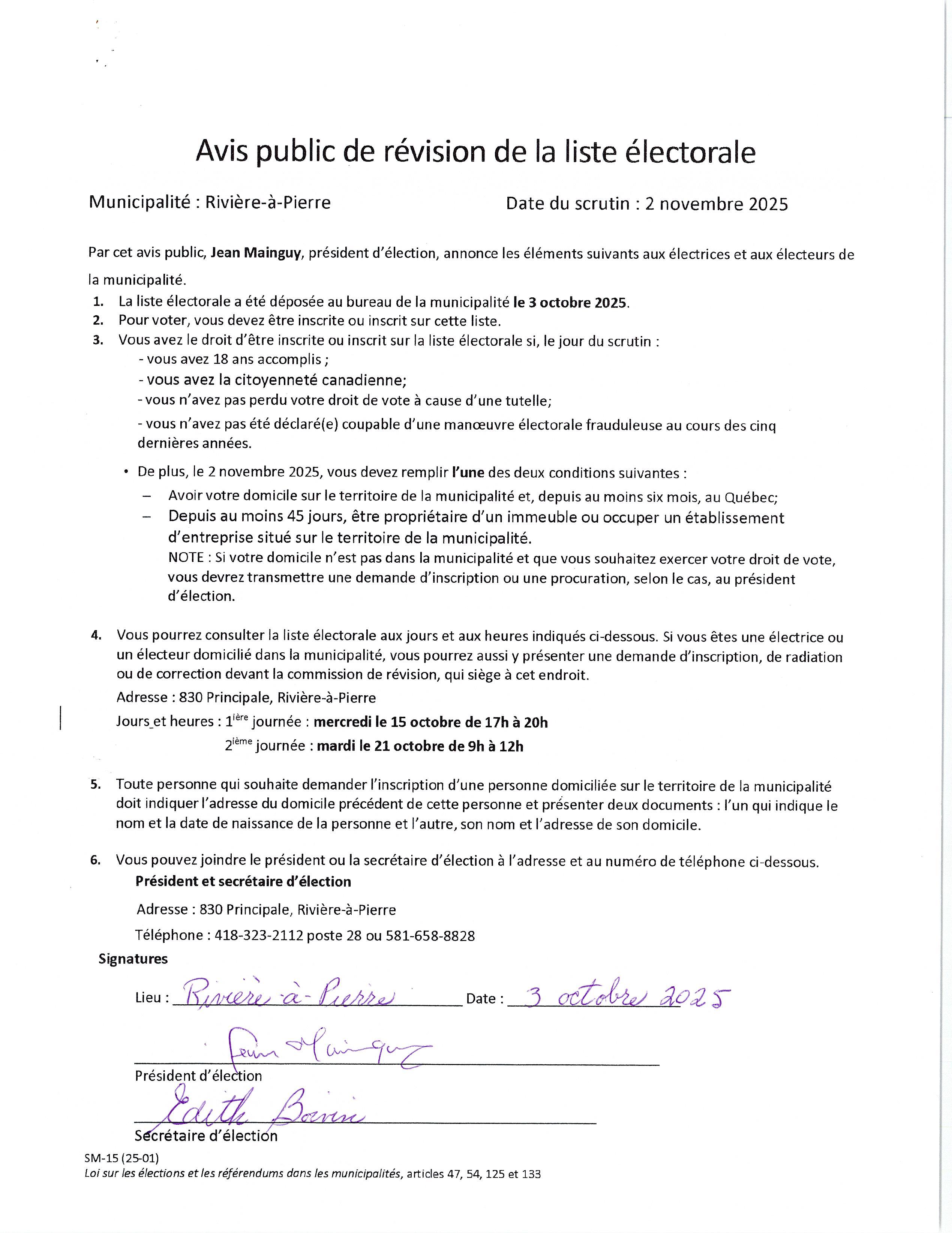 Pour toute information sur les Élections municipales, consulter l'onglet Élections municipales dans Services aux citoyens.
